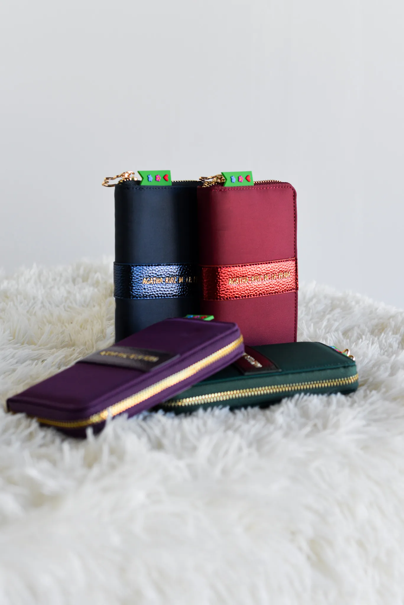 Elegancia y practicidad en un diseño compacto. Este billetero de la colección Nube destaca por la línea central en piel sintética metalizada, sobre la que se sitúa el logo dorado de Agatha Ruiz de la Prada, aportando un toque sofisticado y moderno. Cuenta con una cremallera única que abre el acceso al interior, donde encontrarás un bolsillo adicional con cremallera para organizar mejor tus monedas y tarjetas. El tirador con el icónico icono de la nube remata un diseño exclusivo y funcional.