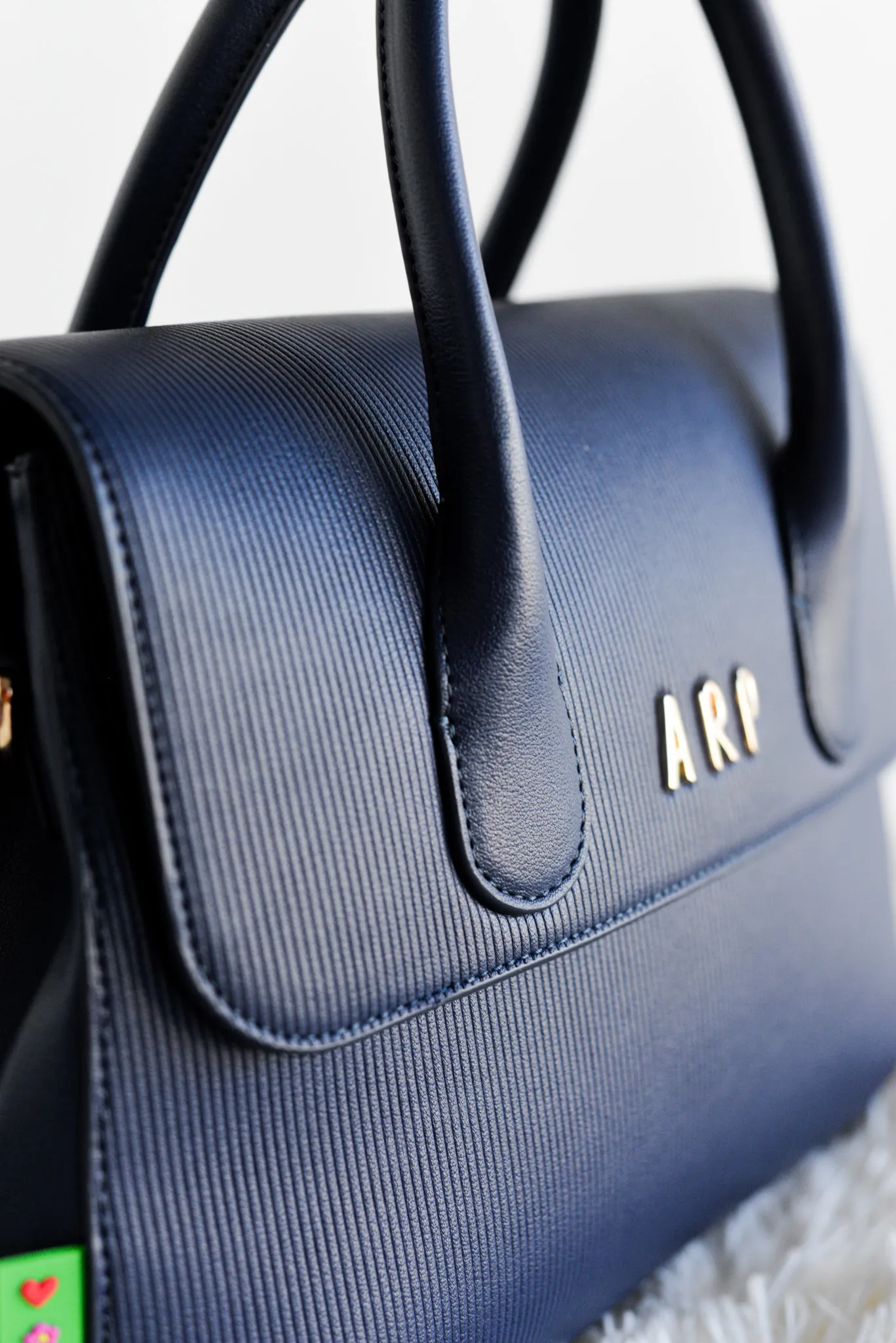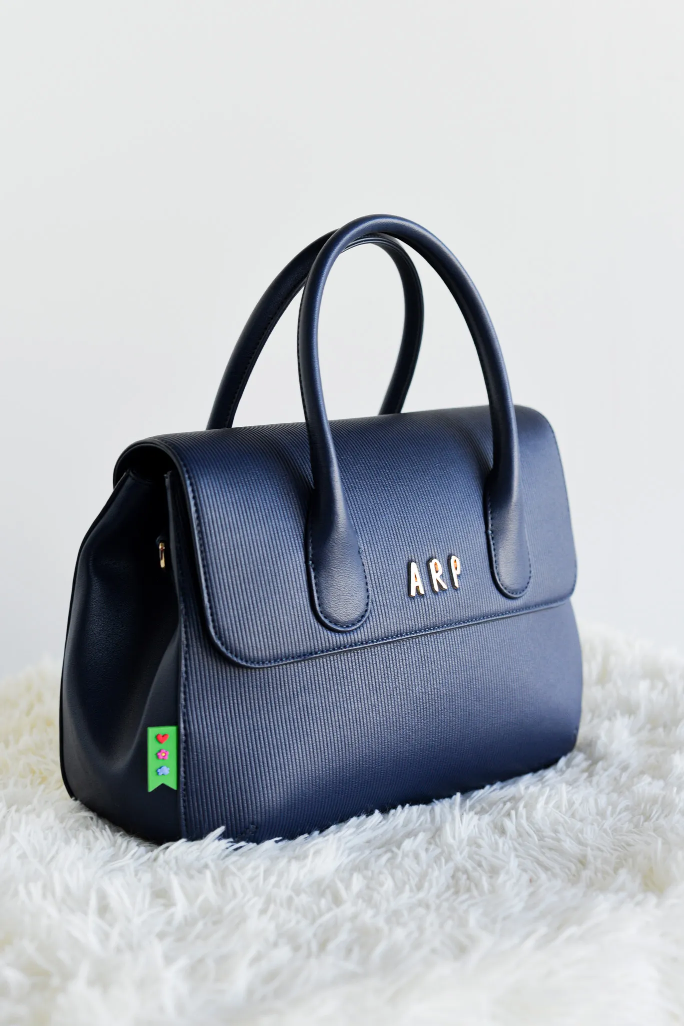 Elegancia y funcionalidad se unen en este bolso de mano con tapa, diseñado en piel vegana grabada con líneas verticales que aportan textura y un acabado sofisticado. Su formato compacto es ideal para quienes buscan un accesorio estiloso pero práctico. Incluye una correa desmontable, perfecta para llevarlo en la mano o colgado al hombro según la ocasión. Los detalles en dorado, como las iniciales ARP y el logo en la correa, aportan ese toque distintivo y exclusivo de Agatha Ruiz de la Prada.