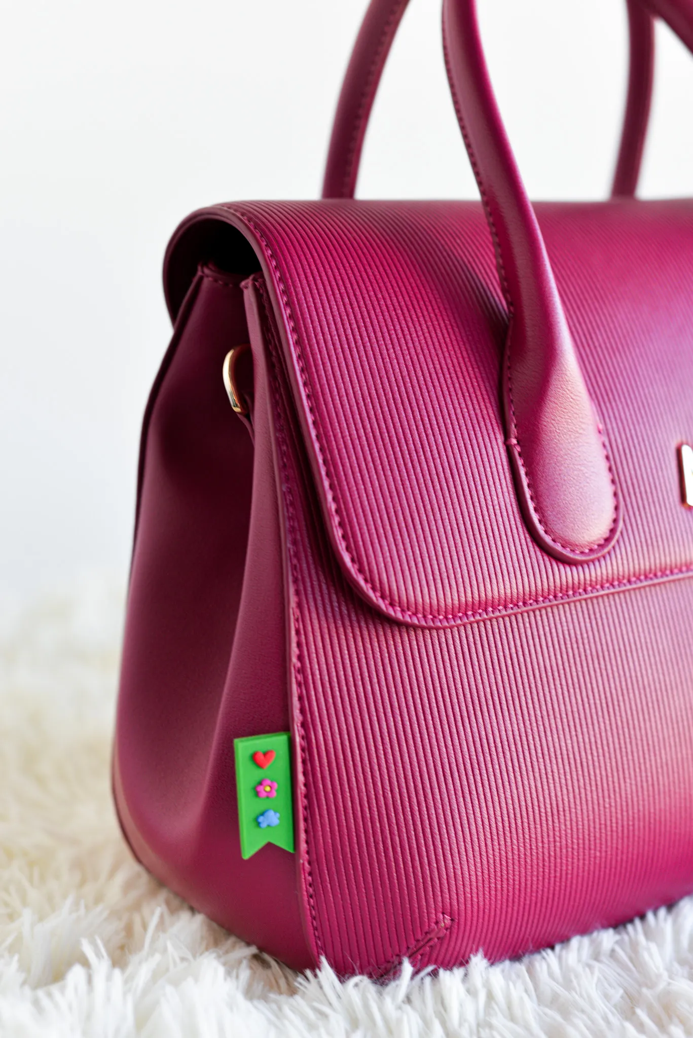 Elegancia y funcionalidad se unen en este bolso de mano con tapa, diseñado en piel vegana grabada con líneas verticales que aportan textura y un acabado sofisticado. Su formato compacto es ideal para quienes buscan un accesorio estiloso pero práctico. Incluye una correa desmontable, perfecta para llevarlo en la mano o colgado al hombro según la ocasión. Los detalles en dorado, como las iniciales ARP y el logo en la correa, aportan ese toque distintivo y exclusivo de Agatha Ruiz de la Prada.