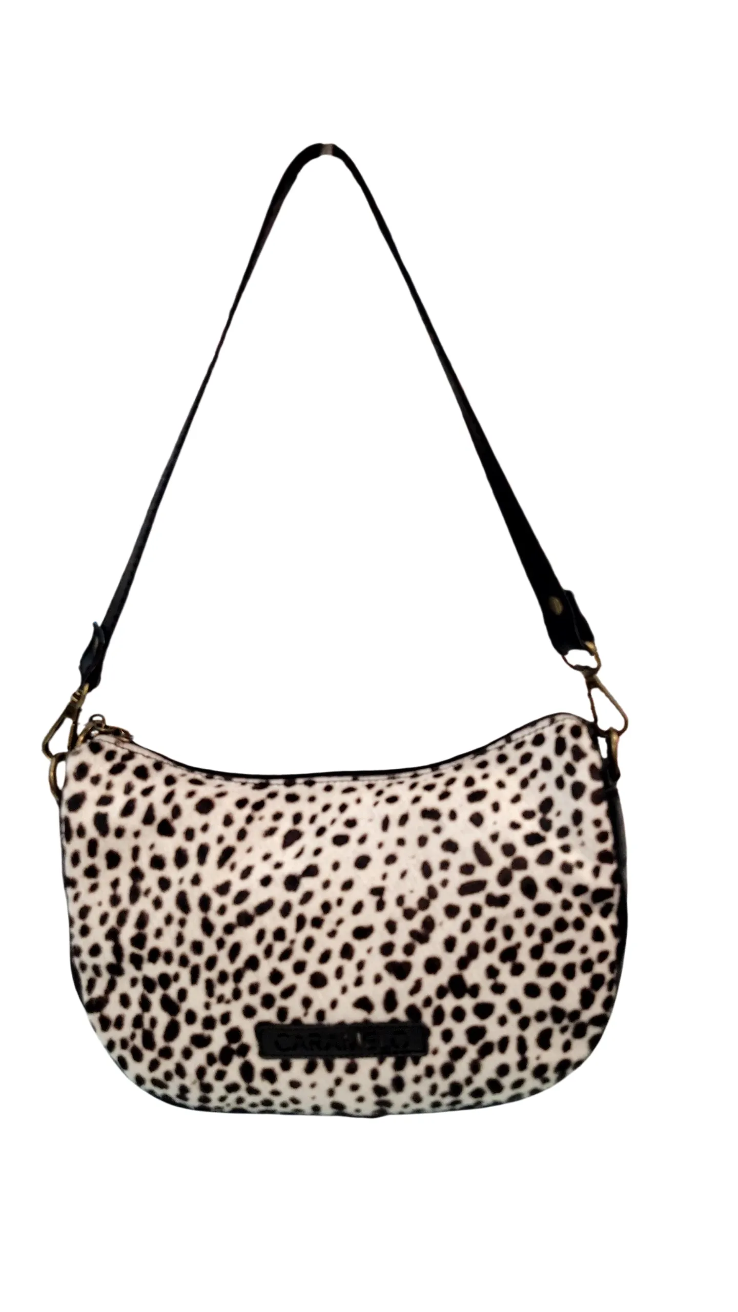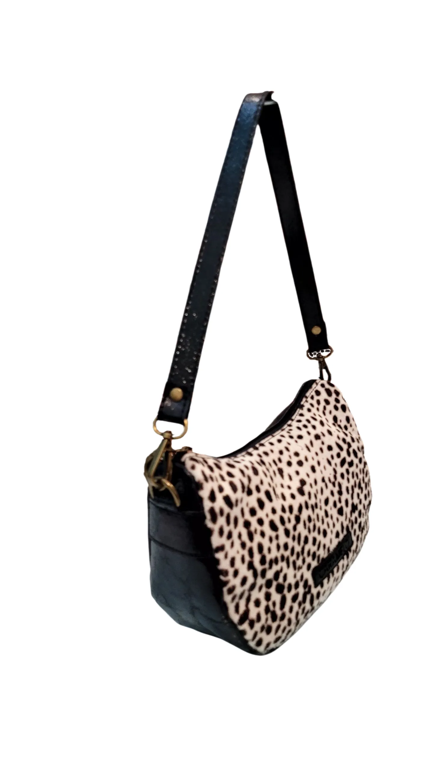 Bolso formato góndola que combina piel metalizada con piel estampado en print que le dan un toque de contraste y un estilo único. Cierra con cremallera superior y amplio interior que cuenta con un bolsillo con cremallera. Bolsillo en la parte trasera con cremallera. Cuenta con dos correas, una para llevar al hombro y otra para llevar de bandolera.