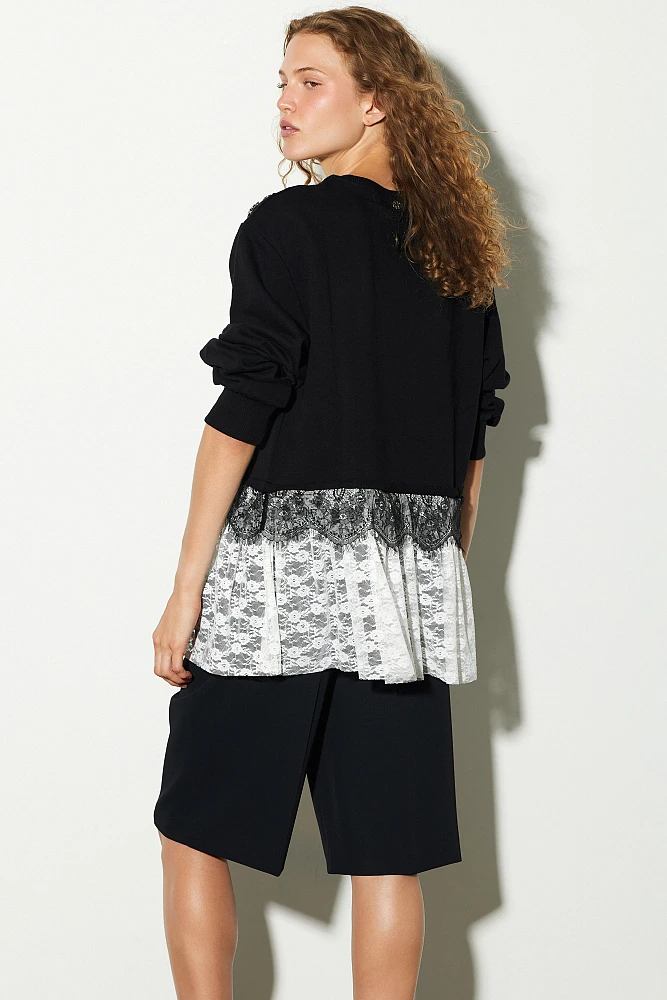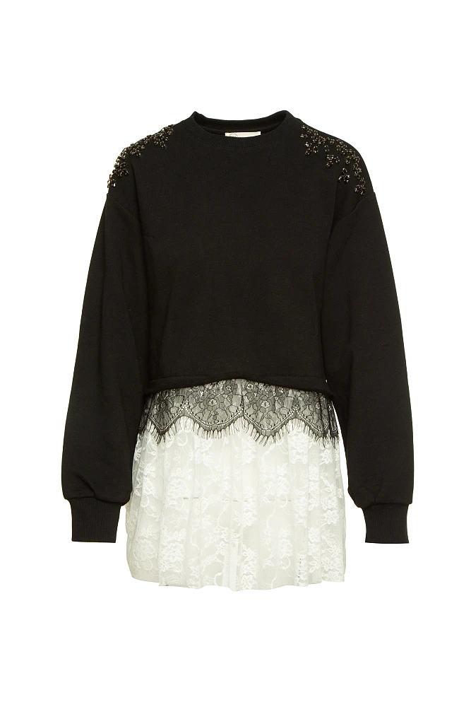 Sudadera de algodon, con mangas largas, cuello redondo, con encaje, con aplicación de strass en los hombros, corte regular.