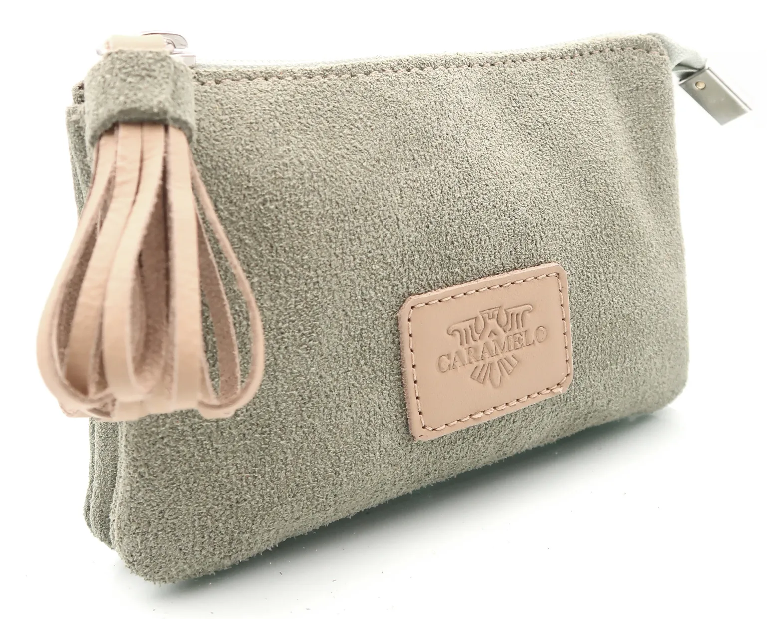Monedero de piel de serraje con dos cremalleras y gran capacidad.