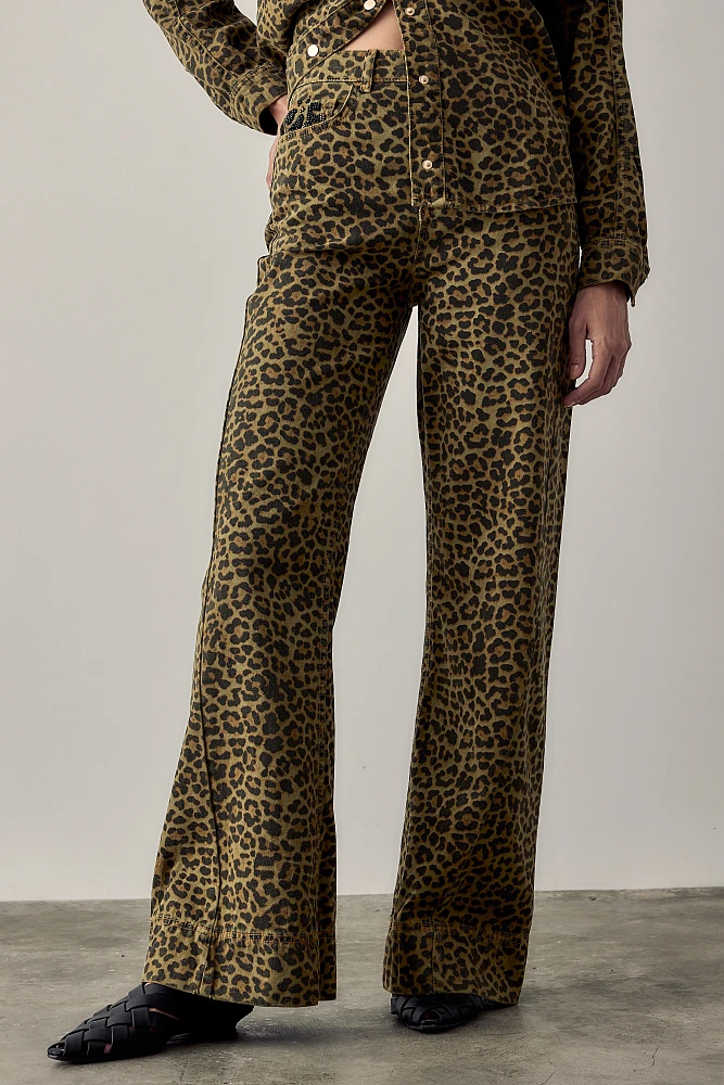 Pantalones de punto acampanados, con correa ajustable en la cintura, corte regular.