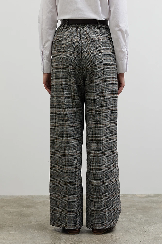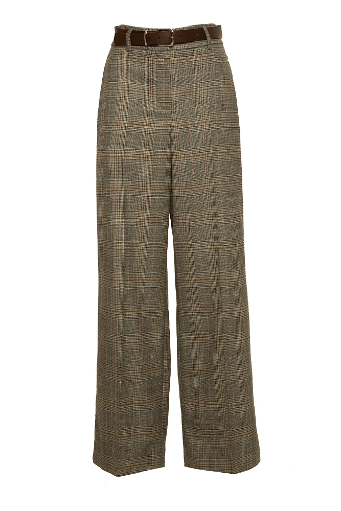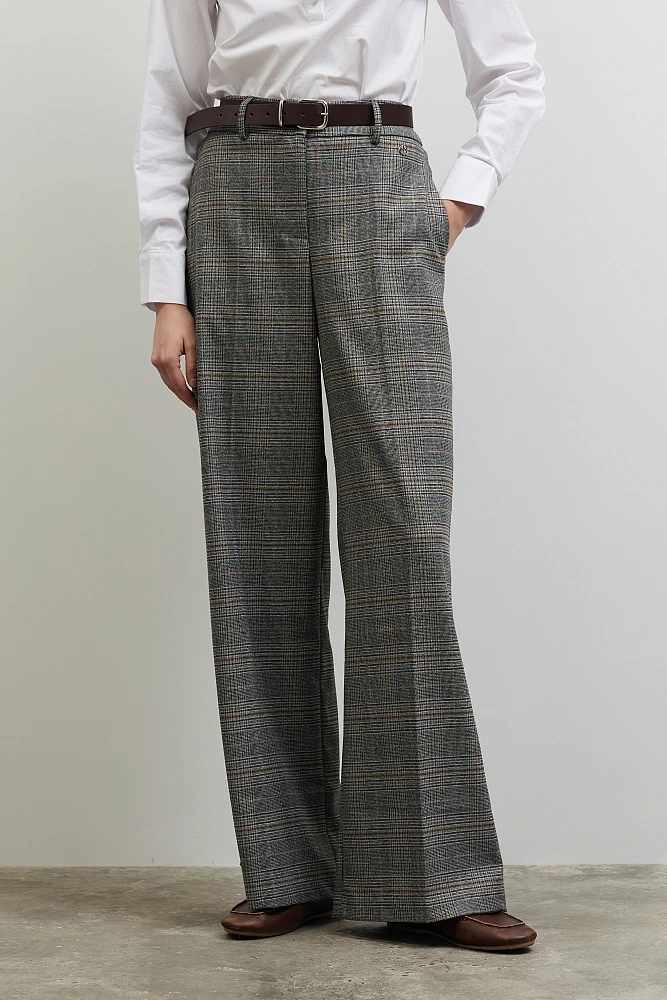 Pantalones de cuadros, con bolsillos, con cierre de cremallera y broche, con cinturón, corte regular.