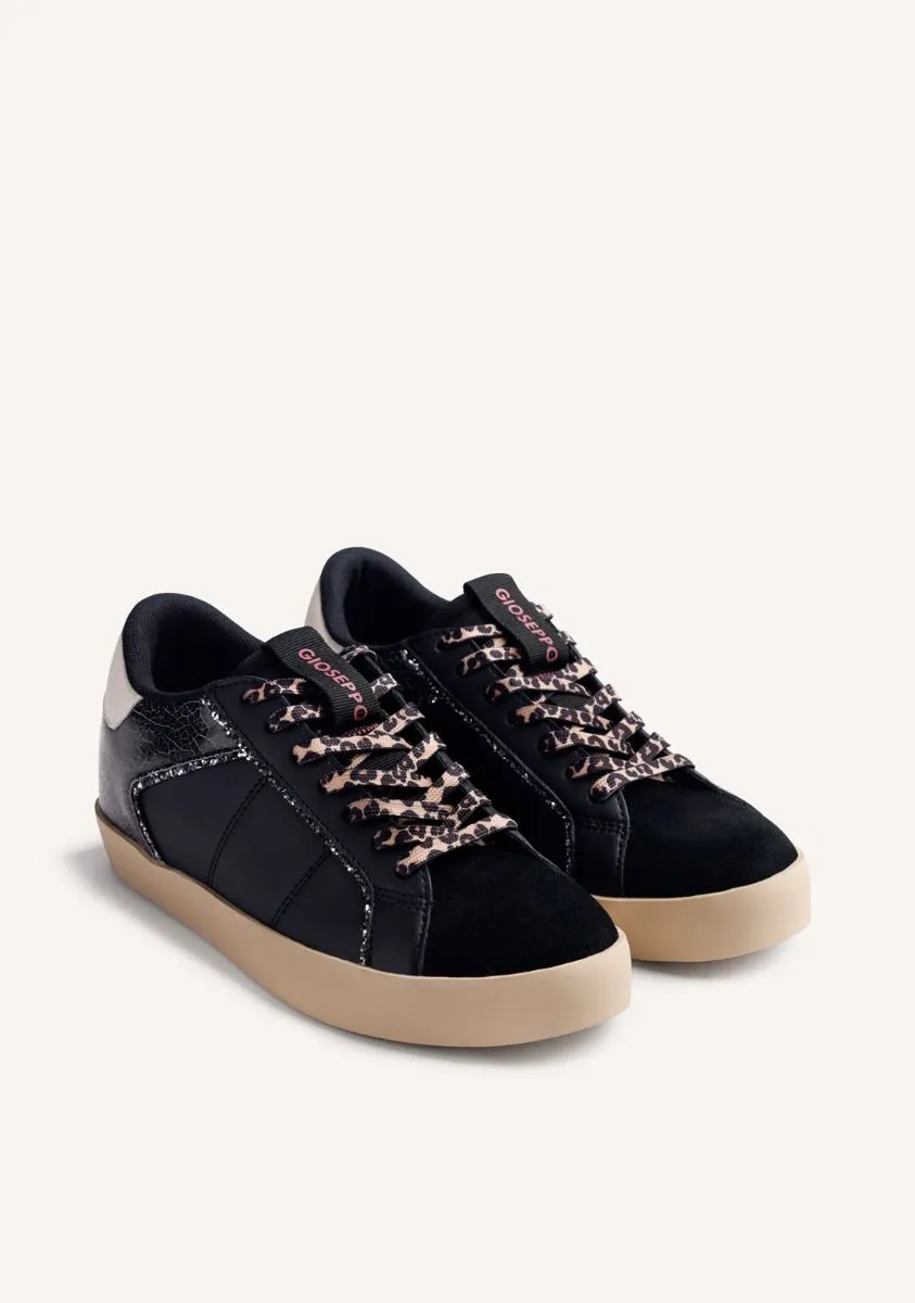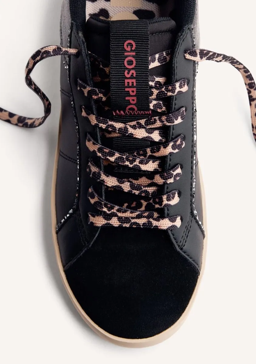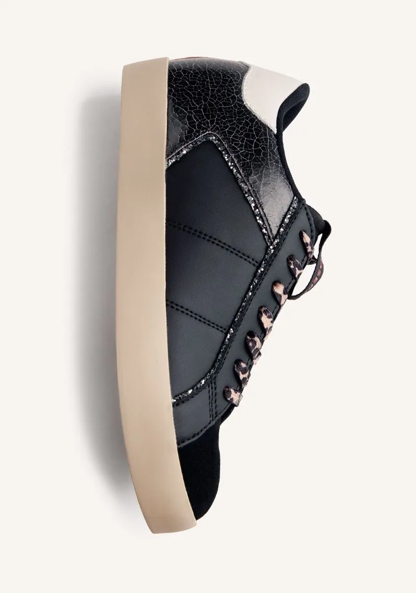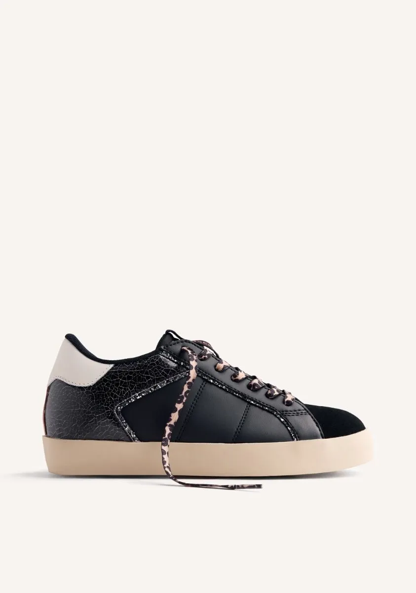 Zapatillas de piel con cuña interna y cordones con estampado animal. Piezas craqueladas y ribete brillante. Cuentan con plantilla acolchada. Altura cuña interna: 2,5 cm. Este artículo ha sido diseñado bajo el asesoramiento del Ilustre Colegio Oficial de Podólogos de la Comunidad Valenciana (ICOPCV) para garantizar el cuidado y la atención que la salud de los pies requiere.